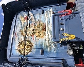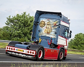 Onze passie voor met name deze trucks heeft ons aan het denken gezet. Een mooie special paint zou de wagen áf maken. Maar ja, een vikingschip of een Noorman was het voor ons niet.